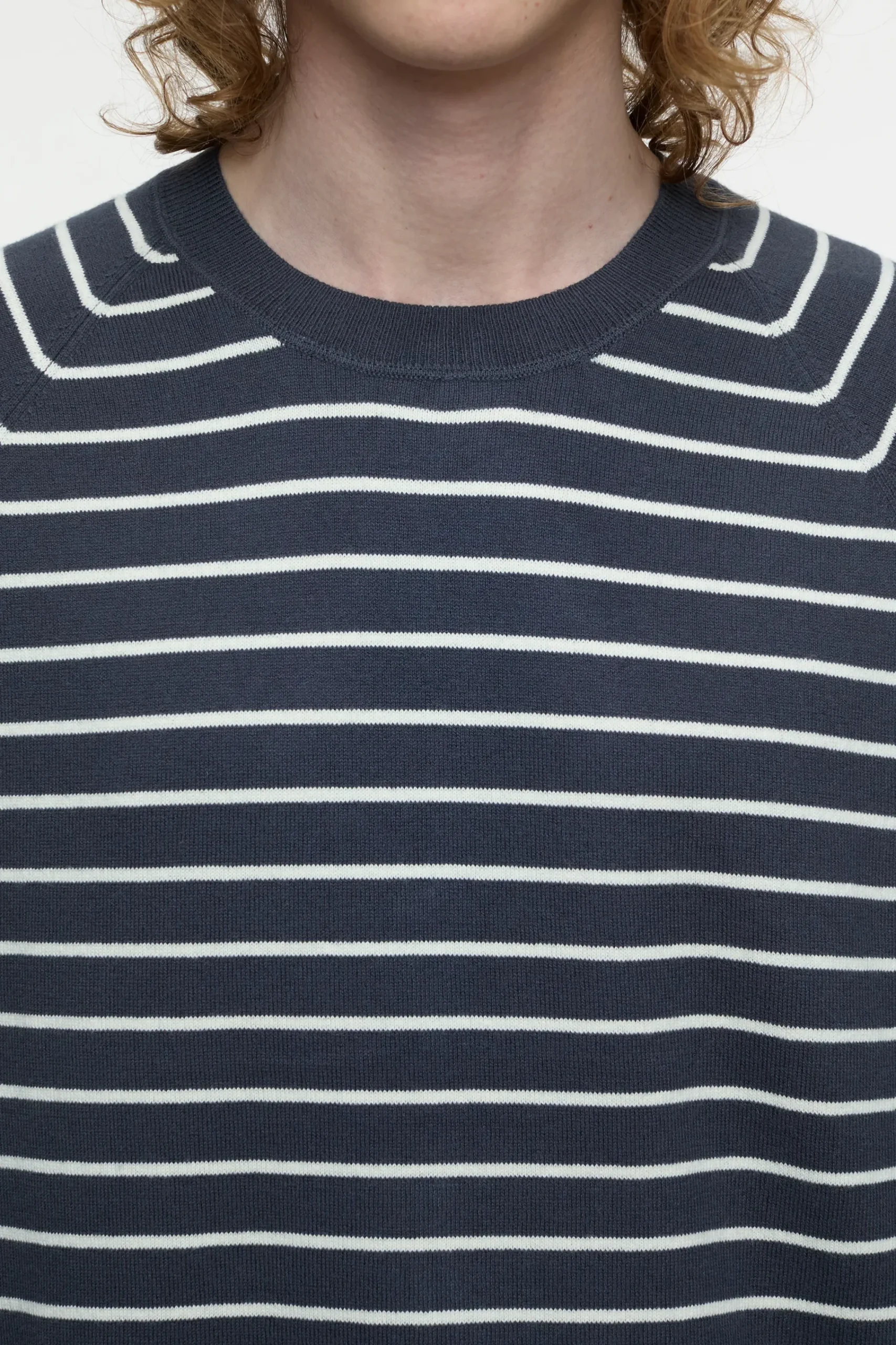 Für diesen Pullover mit Marine-Streifen haben wir hochwertiges Garn aus Bio-Baumwolle und Kaschmir ausgewählt. Mit s…
