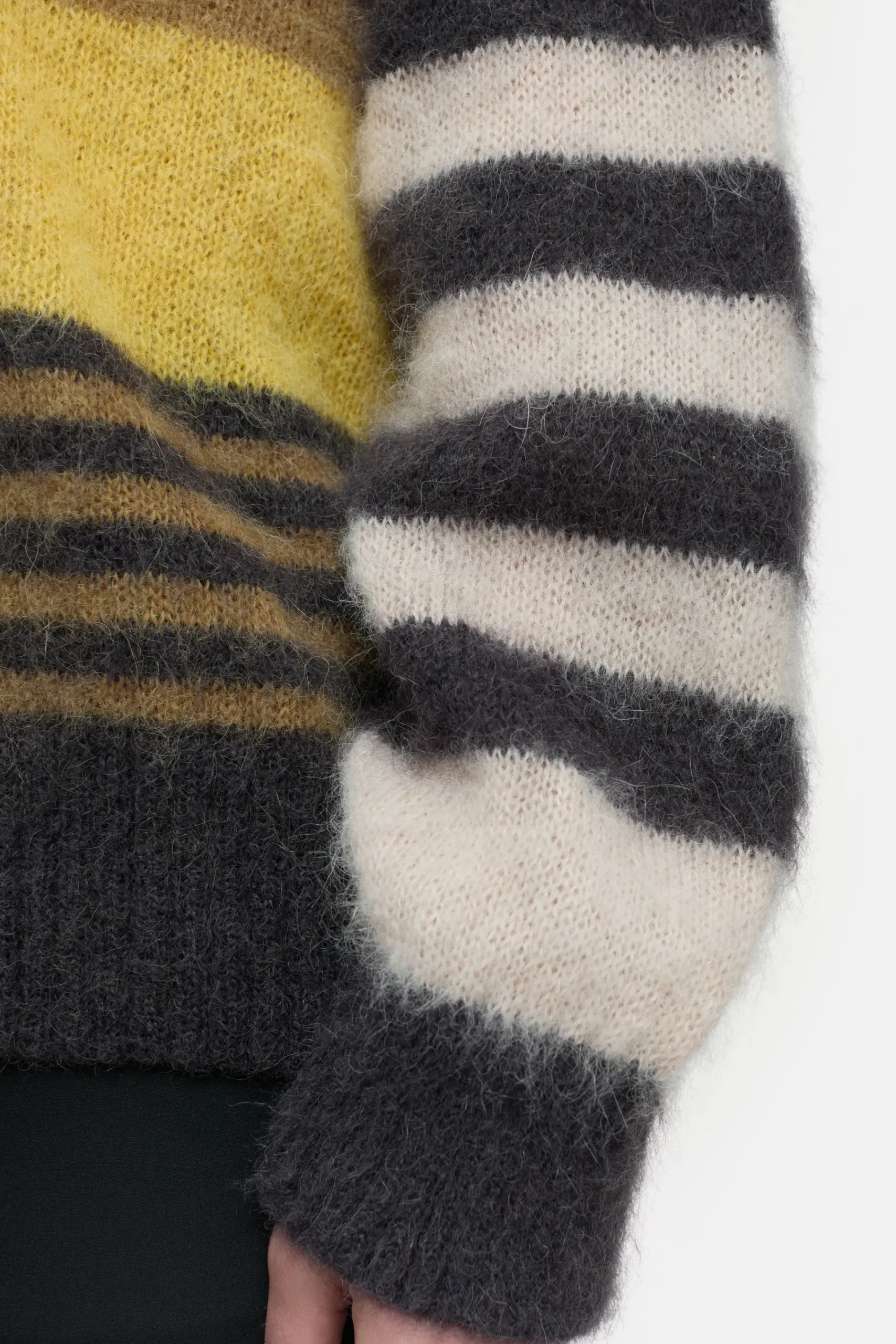 Inspiriert von der Streifen-Kunst des irischen Malers Sean Scully ist dieser Grobstrick-Pullover (5 gg) aus einer hoch…