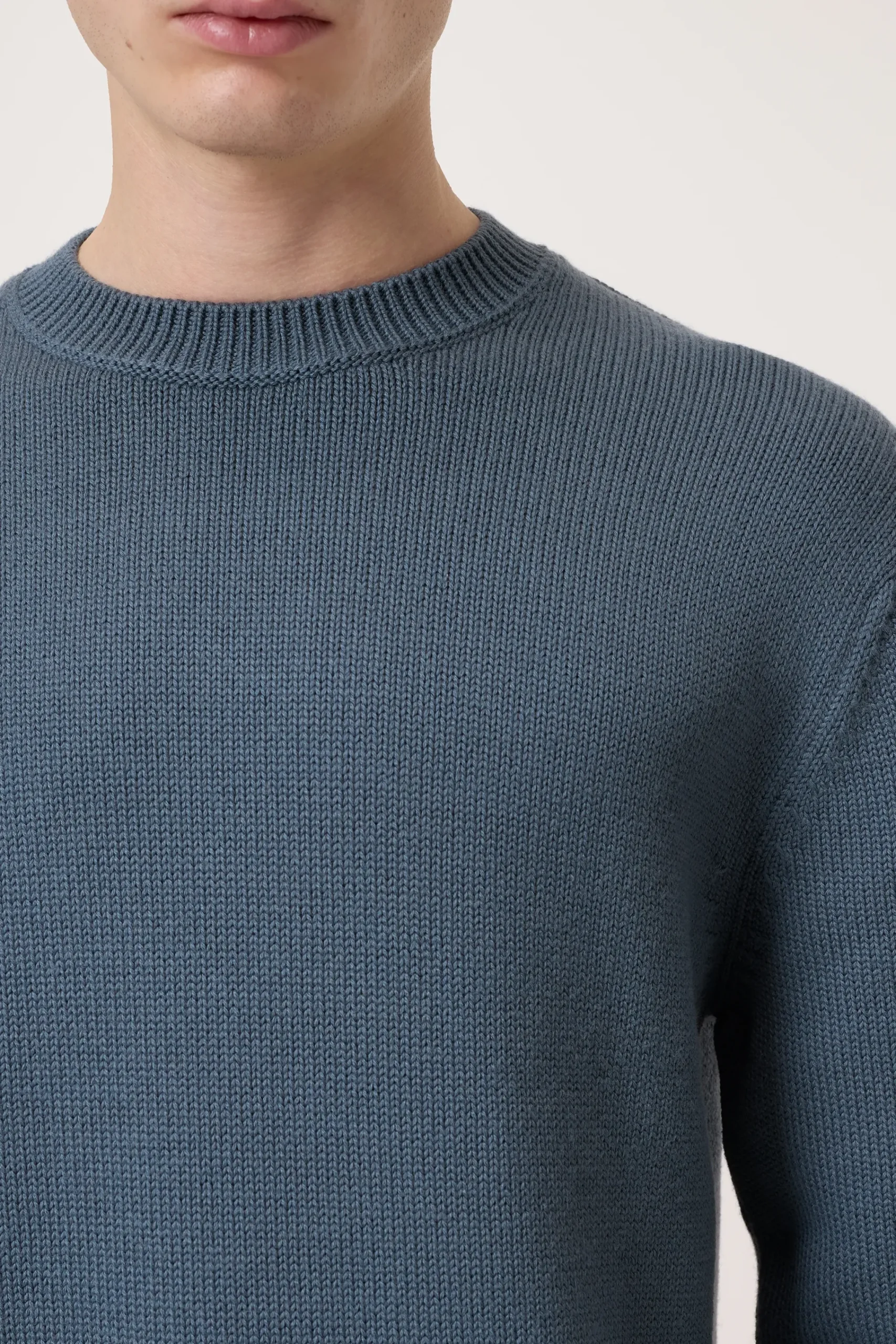 Mit Rippbündchen am Rundhalsauschnitt sowie geripptem Ärmel- und Saumabschluss: Pullover aus hochwertigem Woll-Baumw…