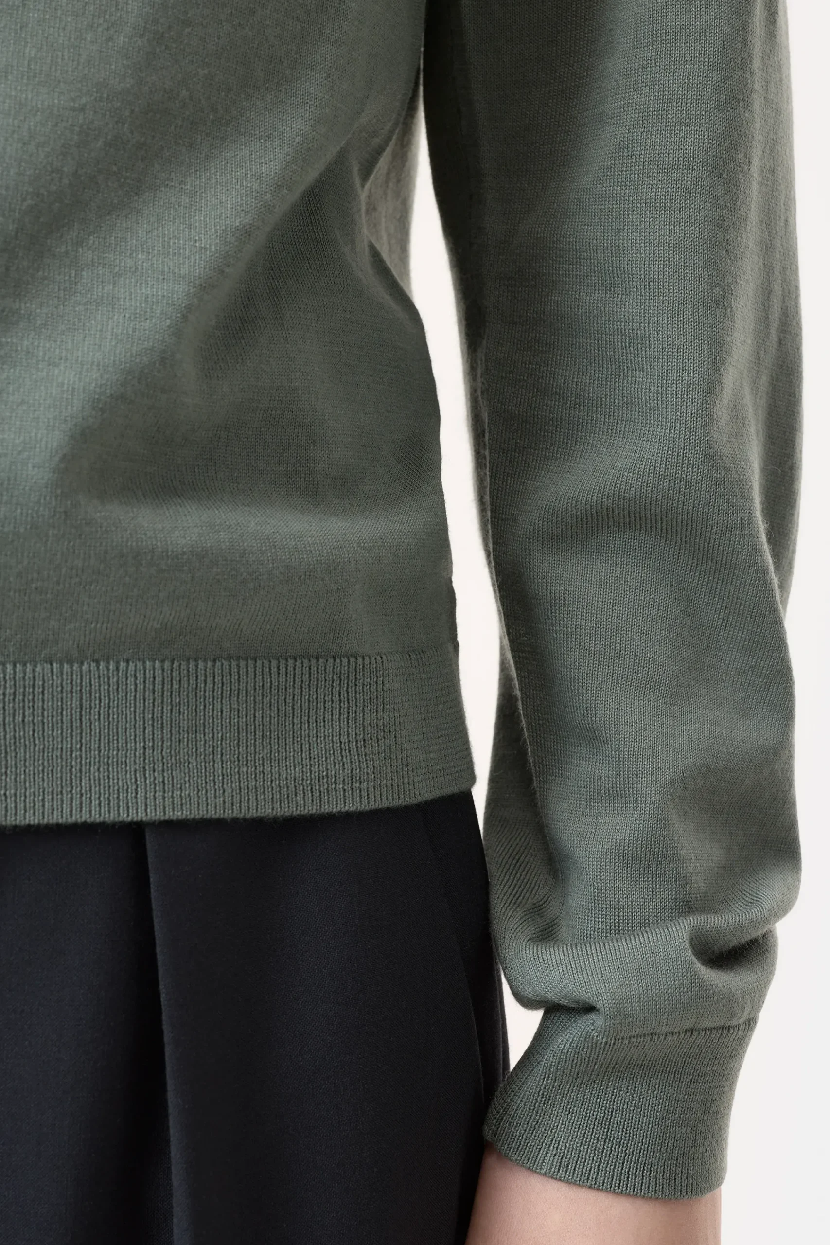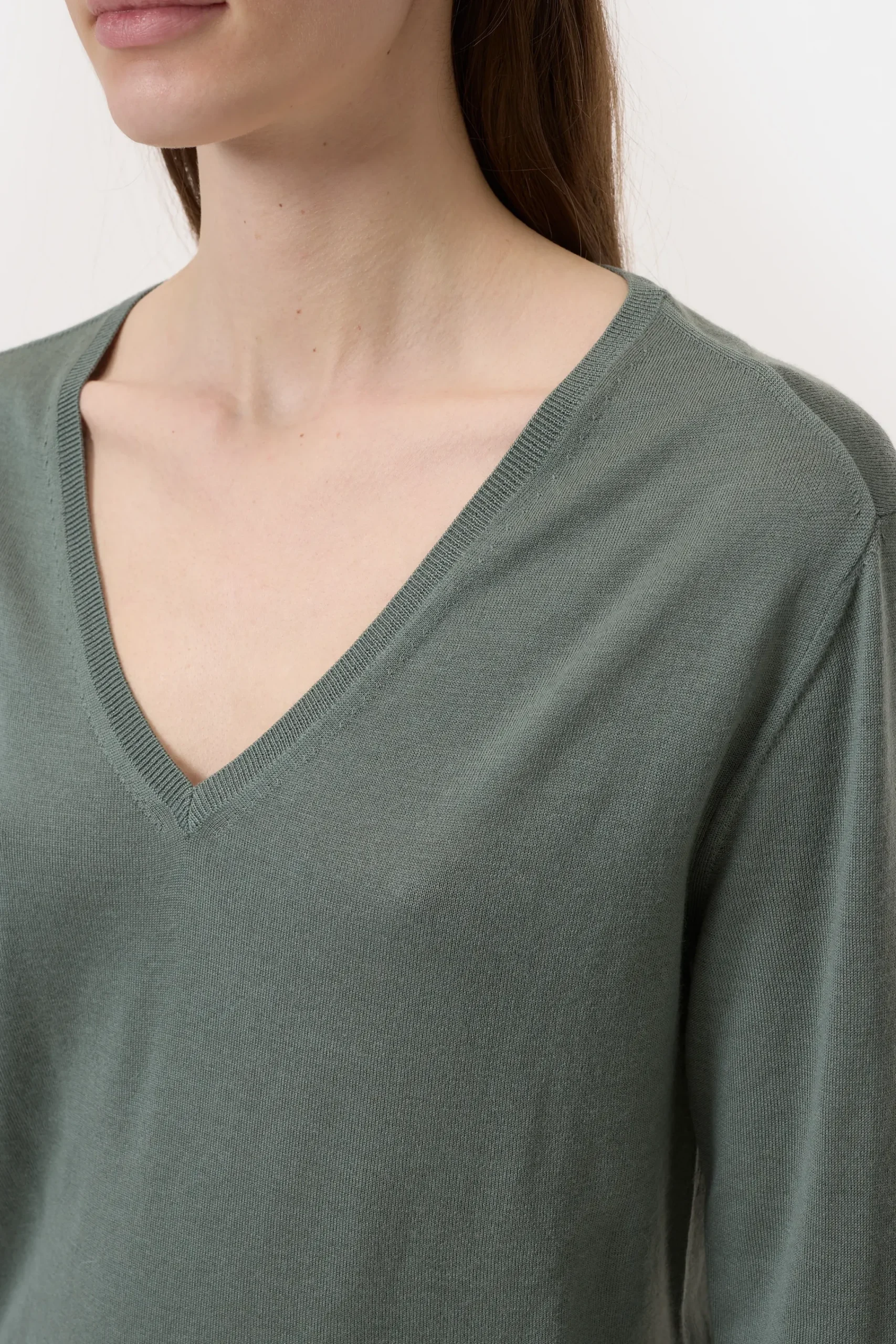 Unser Feinstrickpullover (14 gg) mit V-Ausschnitt ist aus Merinowolle mit leichtem Seidenanteil gefertigt. Dieser gibt…