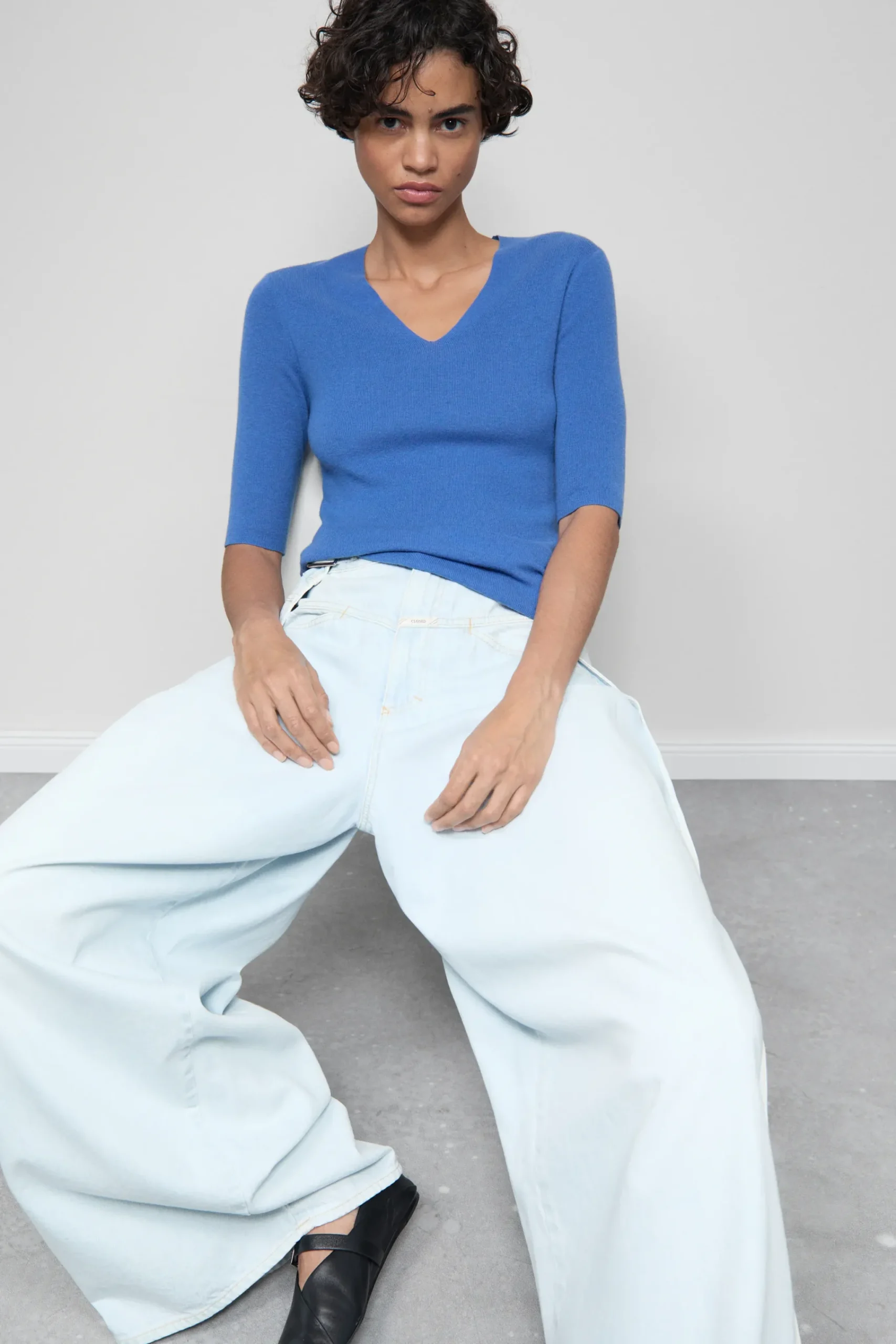 Feinstes und leichtes Kaschmir-Mix-Garn (16 gg) ist für unseren Kurzarmpullover mit V-Ausschnitt verwebt. Durch einen…