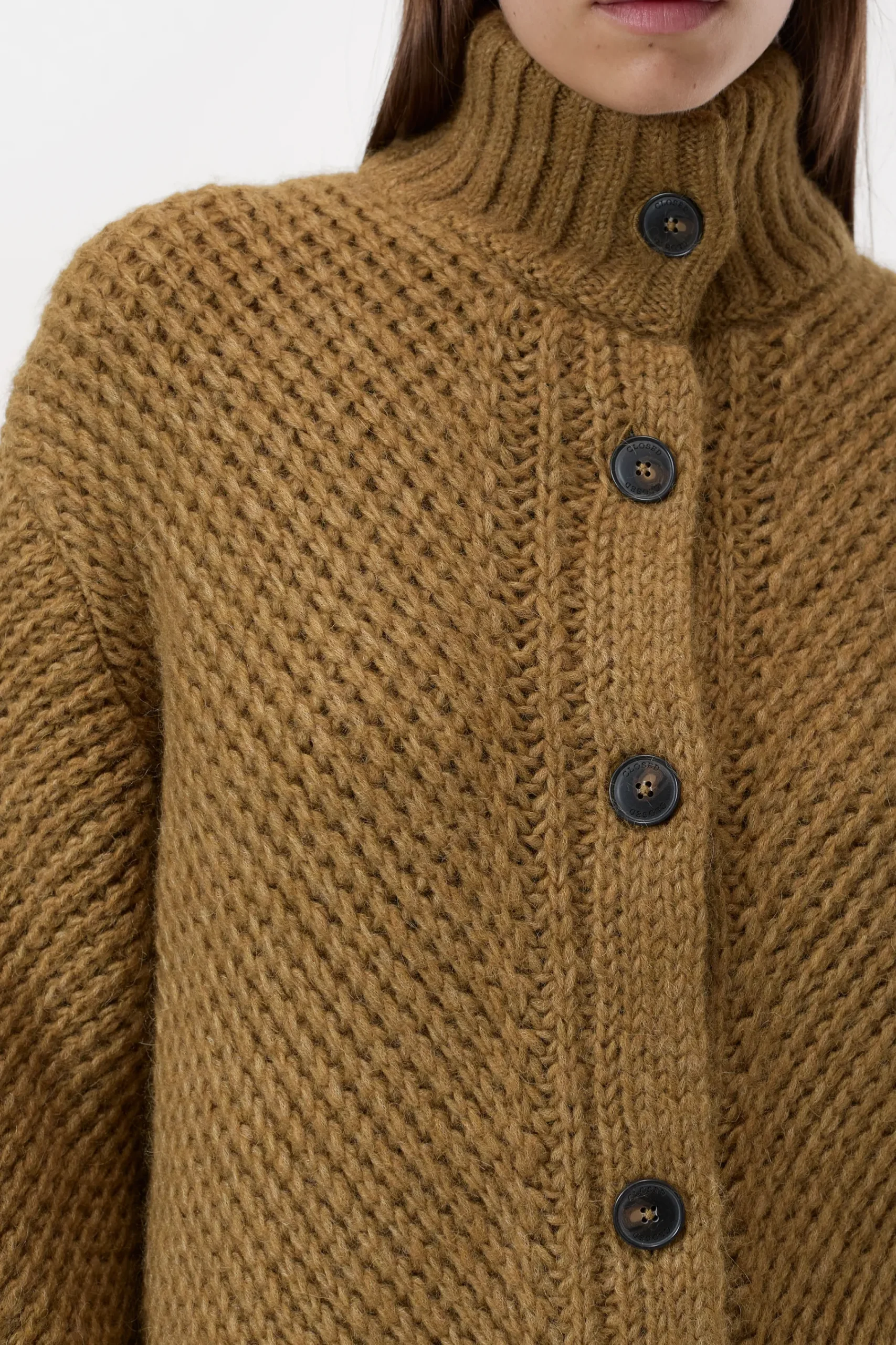 Der lange Cardigan in grobem Fisherman’s Rib (3 gg) ist aus supersoftem Alpaka-Mix in italienischer Qualität gestrick…