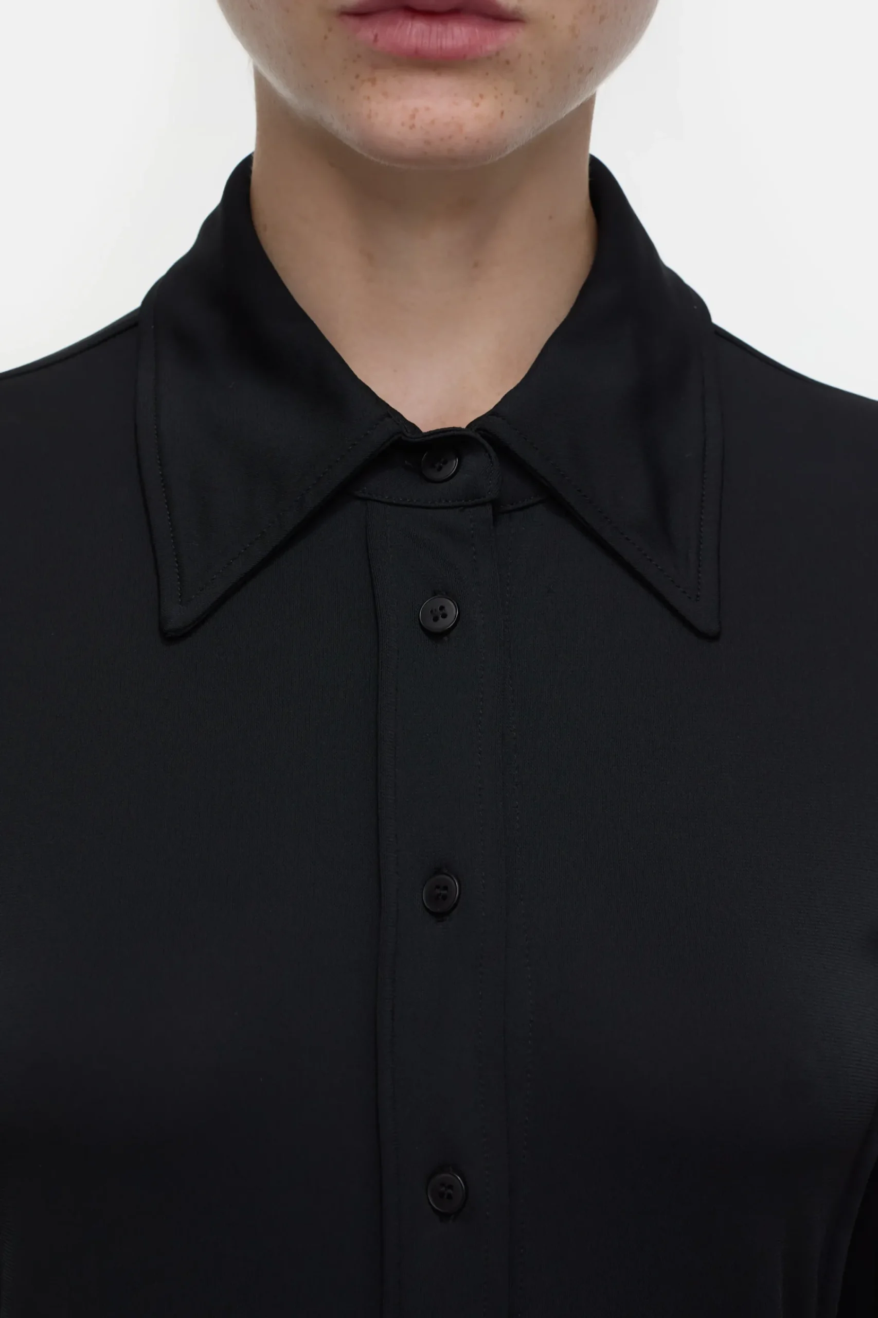 Unsere taillierte Bluse besteht aus hochwertigem Crêpe Jersey in portugiesischer Qualität. Im Slim Fit mit großen M…