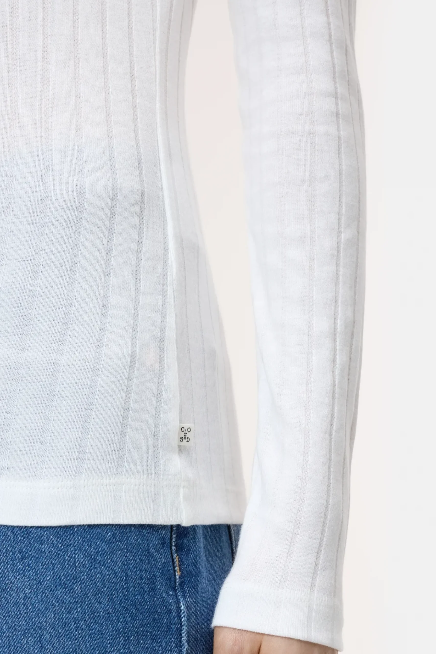 Geripptes Langarmshirt aus weichem Baumwoll-Modal-Mix. Reguläre Passform mit einem hohen Kragen, geraden Ärmeln und …