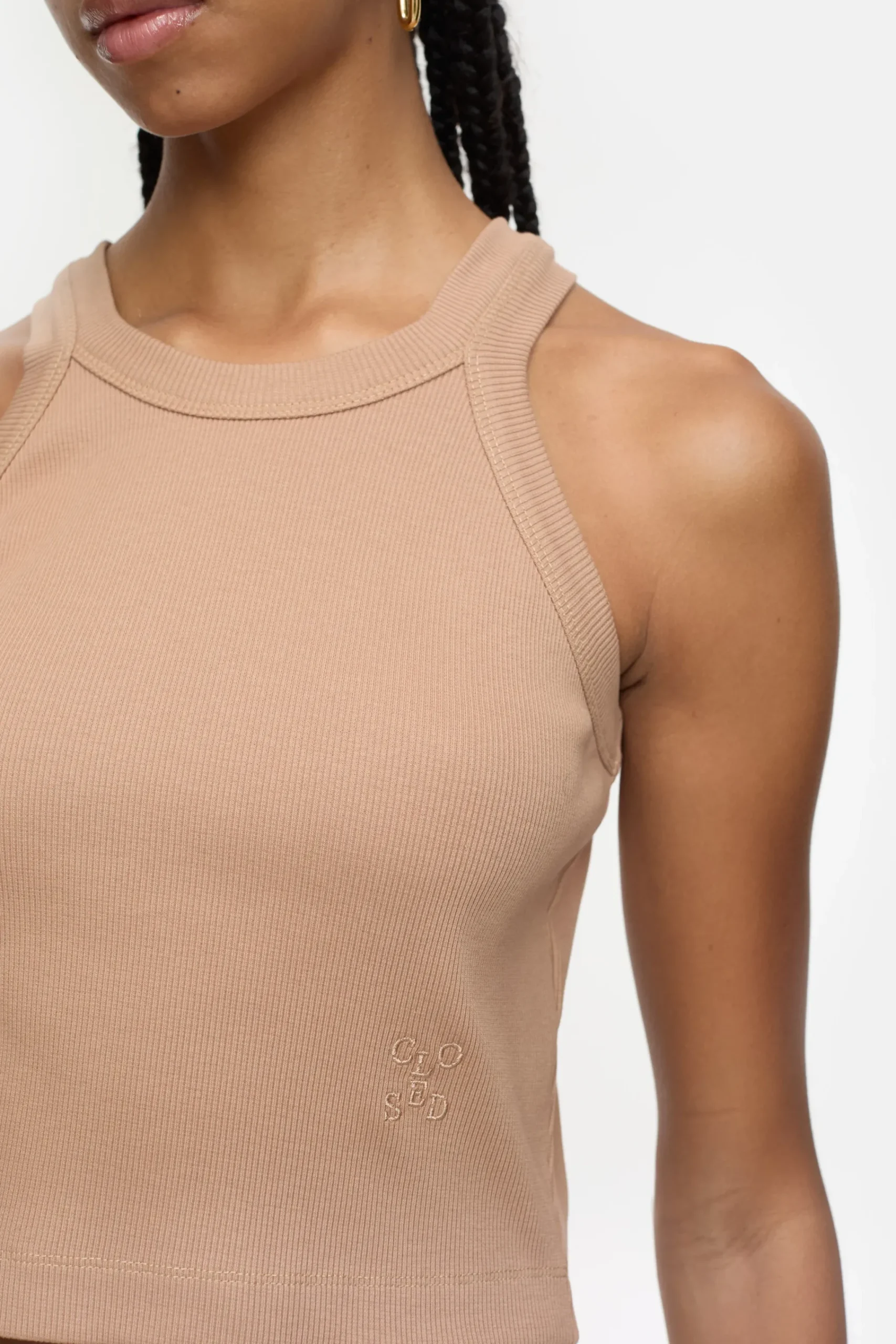 Unser verkürztes Racer Top im Rippstrick ist aus weicher Bio-Baumwolle und Elasthan gefertigt. Im Slim Fit mit filigr…