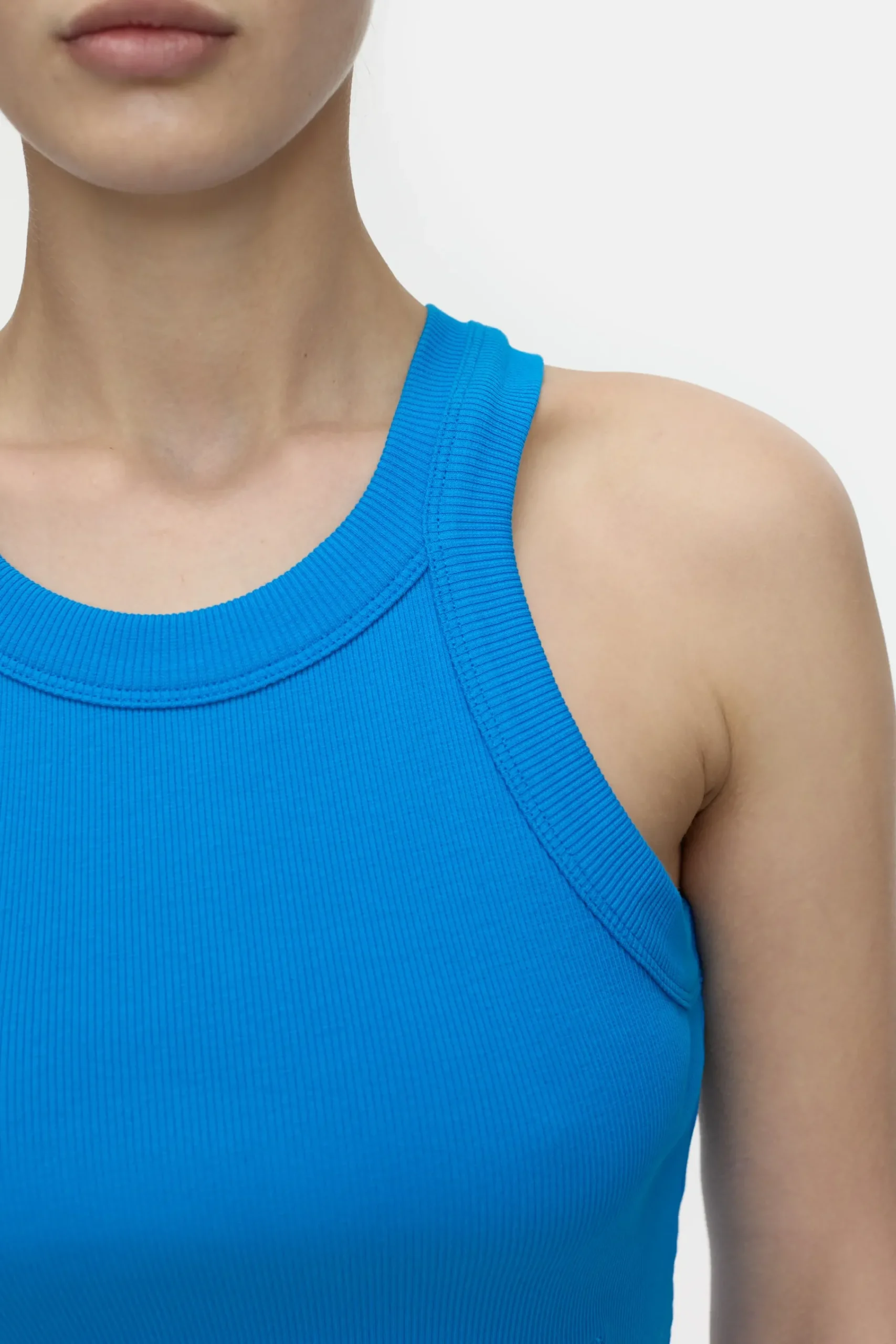 Unser verkürztes Racer Top im Rippstrick ist aus weicher Bio-Baumwolle und Elasthan gefertigt. Im Slim Fit mit filigr…